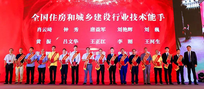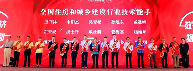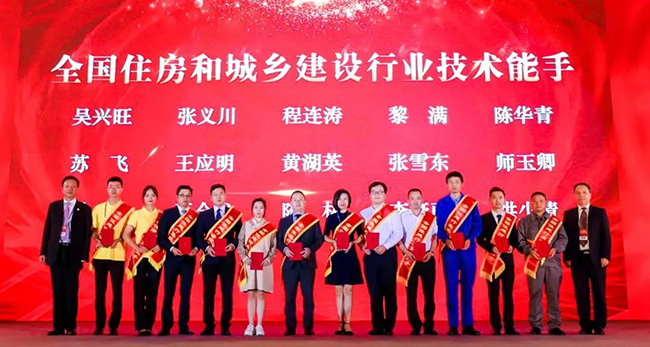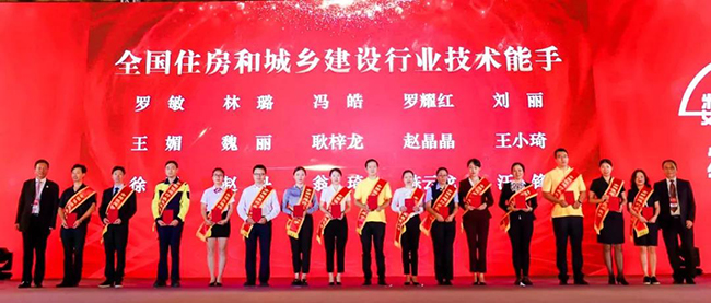 中国物协副会长李健辉、名誉副会长曹阳为“全国住房和城乡建设行业的技术能手”颁发荣誉证书