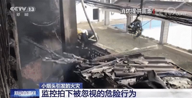 2019年3月13日,湖北鄂州一居民小区发生火情,而火灾原因就是由于居民在上楼时随意将没有熄灭的烟头扔下杂物间,引燃周边可燃物。火势迅速蔓延,整栋居民楼很快就被浓烟烈火包围。