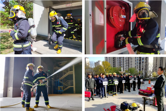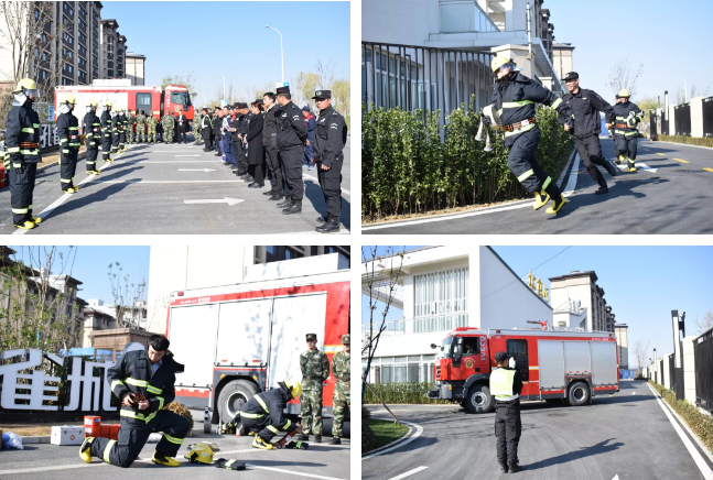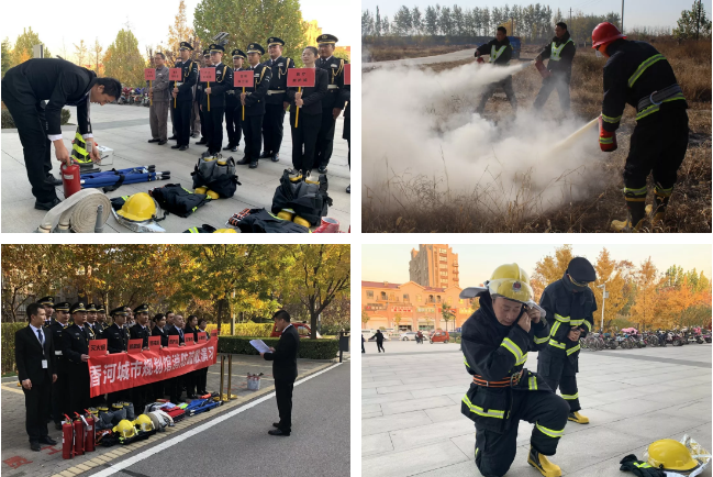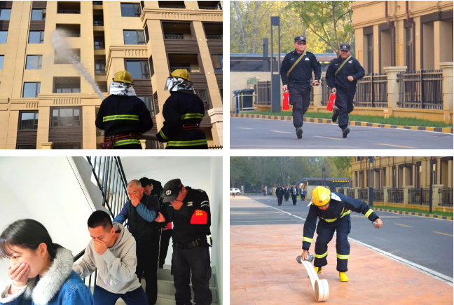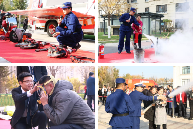 11月8日,地产物业京南分公司联合固安县消防大队组织年度消防演习活动。根据不同的侧重点分为住宅、非住宅两场,讲解消防处置流程、专业消防器具使用方式,邀请业主体验灭火器材操作,模拟火情开展实操演习。