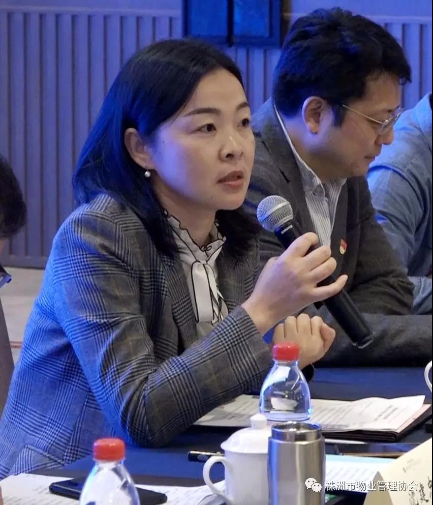 湖南省住建厅房地产监管处副处长冯典英作了发言,她说:全省物业行业在党建引领下,得到了持续健康发展。但也存在优质服务的需求与供给之间的矛盾,价格与服务质量不匹配问题,下阶段行业协会与企业要共同发力,推动行业市场化、标准化,规范化建设,促进行业高质量发展。