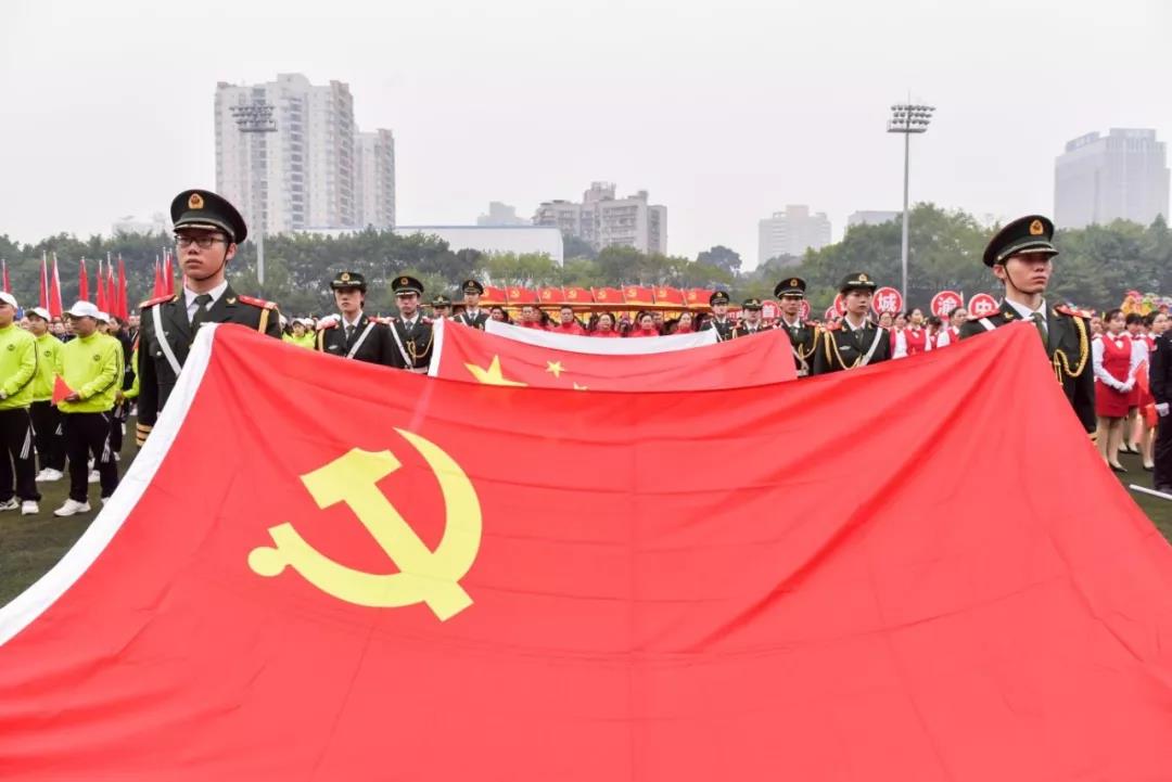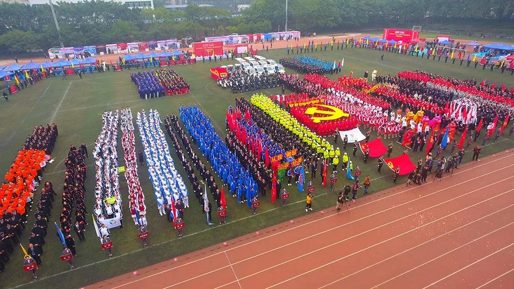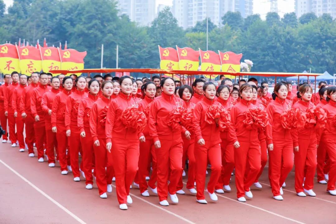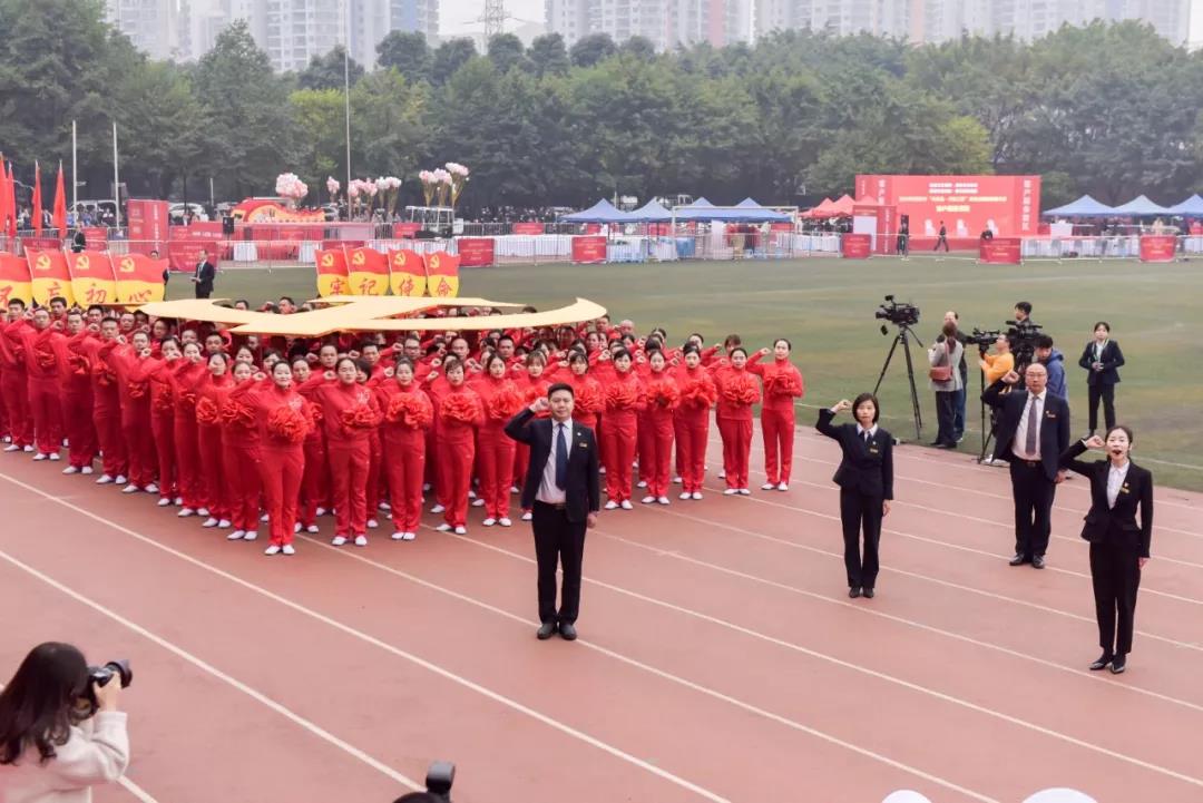 党旗领路,党员紧随!大赛方阵由党员方队领头入场,重庆助友创美物业管理有限公司党委120名党员代表高举着“不忘初心 牢记使命”字牌,现场重温入党誓词,展现行业党员的风采。随后是裁判方队,以及渝中、江北、铜梁、合川、奉节等22个区县、高职院校和公租局方队,紧随其后的是秩序维护、客户服务、工程方队等组成的专业方阵,近900名参赛选手,按方队统一着装,迈着整齐的步伐,喊着口号逐一入场。