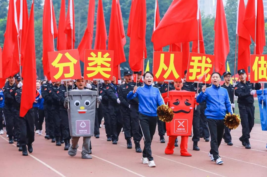 值得一提的是,这次技能大赛也积极响应重庆市住房城乡建委倡导的智能化、智慧化建设,在参赛队员身份检录上使用了“团万家科技”提供的人脸识别系统,提升了检录效率,确保大赛高效有序实施;为响应国家垃圾分类号召,在环境保洁比赛中设置了垃圾分类实操环节;为展现“小区智管”,开幕式设备方阵展示了包括无人机在内的一些物业服务新机械新设备。