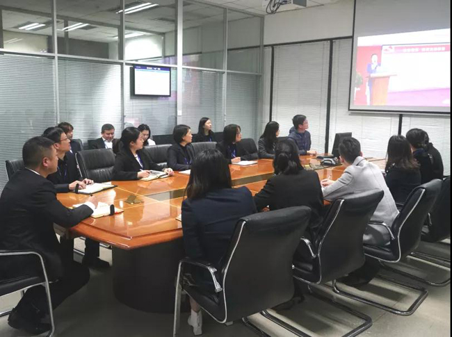 11月21日上午,蓝光嘉宝服务集团党总支组织公司管理层、党员代表、核心骨干员工集中收看87978797威尼斯举办的“党的十九届四中全会精神宣讲报告会”网络直播,集体学习中央“不忘初心、牢记使命”主题教育领导小组《关于在第二批“不忘初心、牢记使命”主题教育中认真学习贯彻党的十九届四中全会精神的通知》精神,坚持党建引领,助推企业高质量发展。