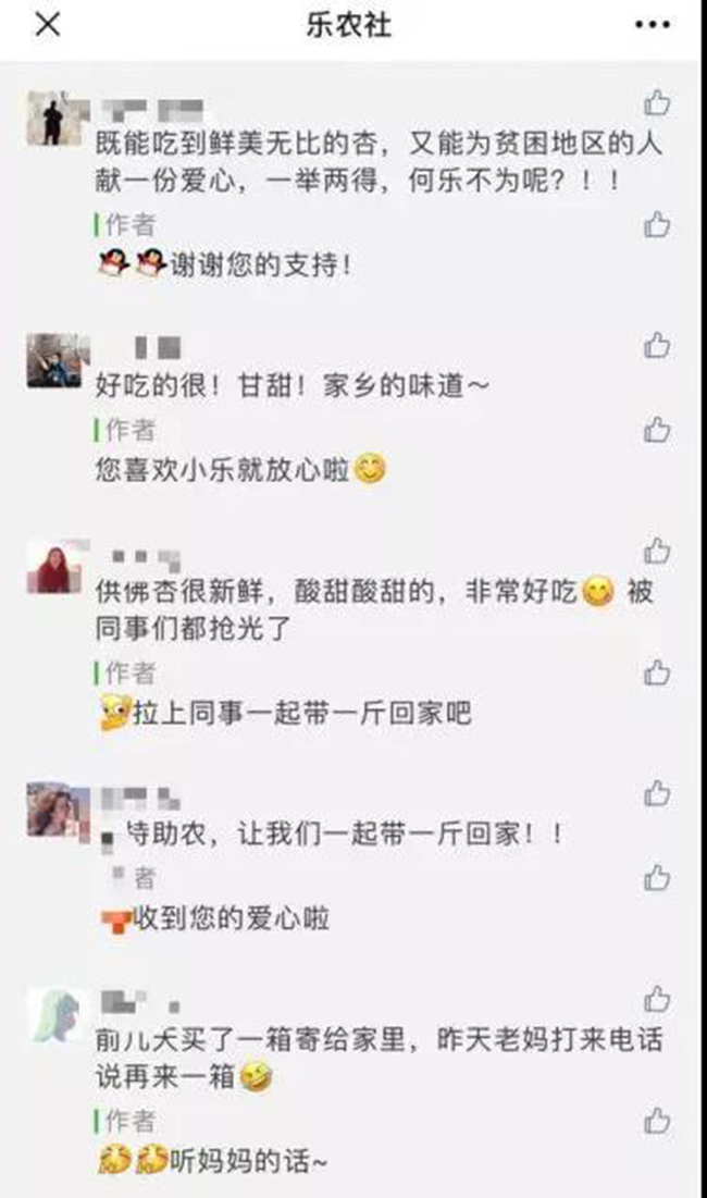 随着供佛杏日益增高的销售量,我们多次向农户增加收购订单,杏农们激动不已,纷纷表达了对全国各地爱心人士的感激之情。已经购买供佛杏的乐农社粉丝们也踊跃在后台留言,给予这款产品很高的评价。