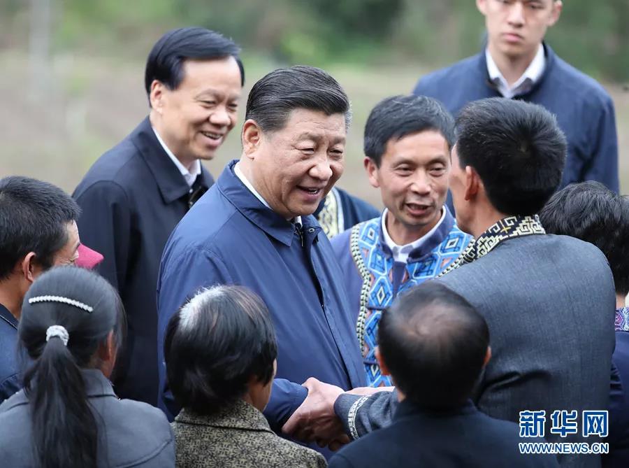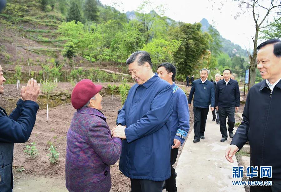 415日至17日,中共中央总书记、国家主席、中央军委主席习近平在重庆考察,并主持召开解决“两不愁三保障”突出问题座谈会。这是415日下午,习近平在石柱土家族自治县中益乡华溪村同村民亲切交流。新华社记者 丁海涛