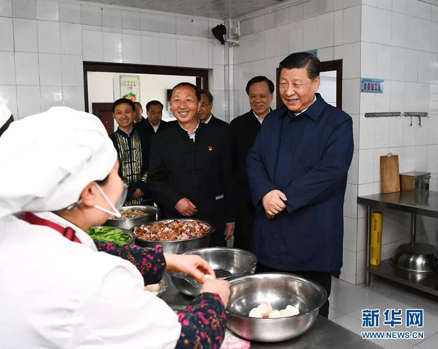 415日至17日,中共中央总书记、国家主席、中央军委主席习近平在重庆考察,并主持召开解决“两不愁三保障”突出问题座谈会。这是415日下午,习近平在石柱土家族自治县中益乡小学走进师生食堂,了解贫困学生餐费补贴和食品安全卫生情况。新华社记者 谢环驰