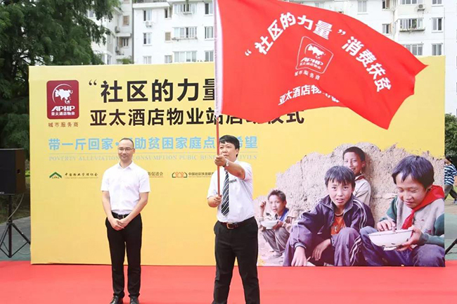 随后周朝辉向天一家园项目总经理授旗,标志着“社区的力量”—亚太酒店物业站正式启动。在宁波这座“爱心城市”,打响爱心企业消费扶贫攻坚战的第一枪。
