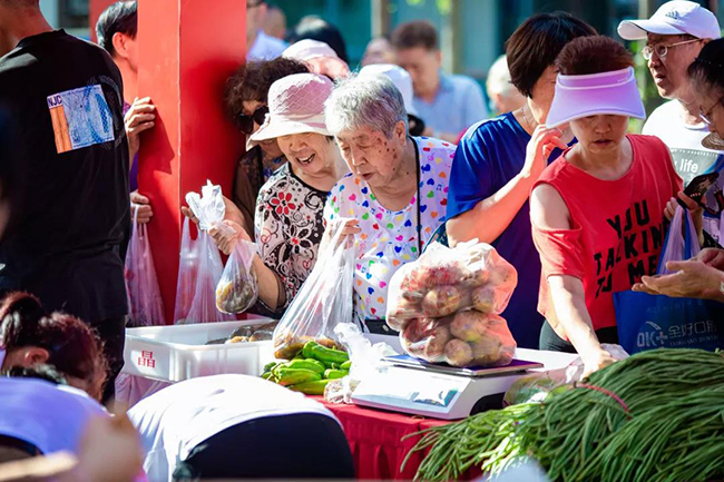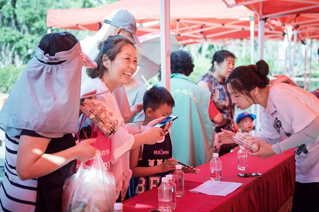 打通消费壁垒,直通百姓餐桌,大集为市民带来新鲜与健康的同时,让农民真正获益。当天,数十位农民现场售卖黑毛猪肉、笨鸡蛋、安波蓝莓、四平核桃等农产品万余斤,营业收入合计约12万元,其中当天未售出价值7万余元的农产品由亿达物业服务集团原价托底收购。