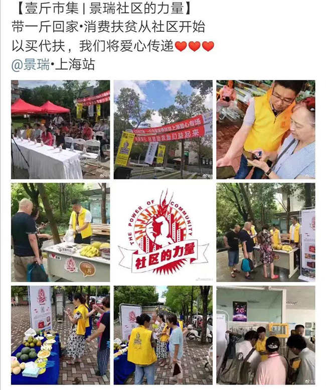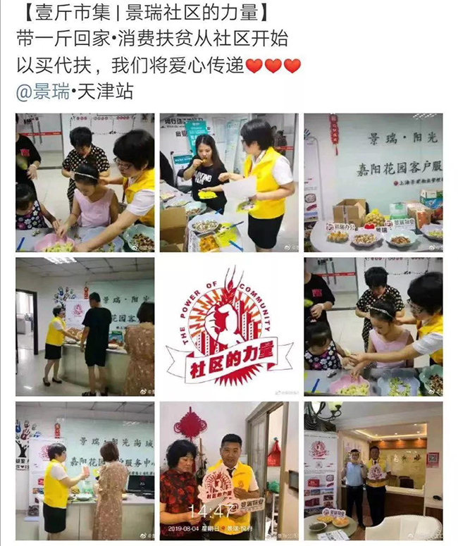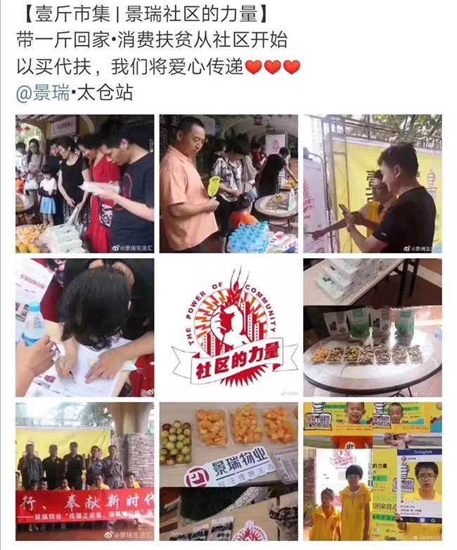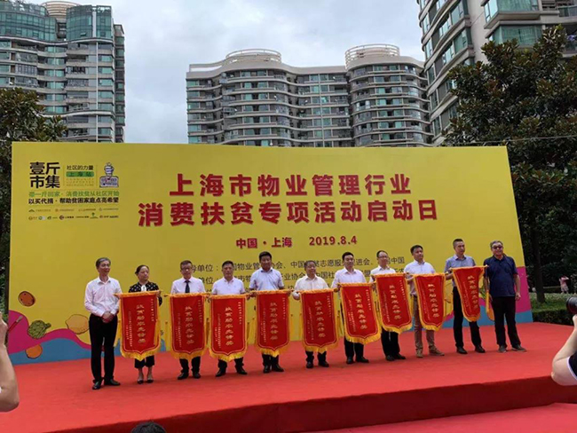 2019年8月4日,“上海市物业管理行业消费扶贫专项活动启动日”,暨“社区的力量”消费扶贫攻坚行动“一斤市集”上海站活动宝山分会场,上海景瑞物业美兰湖岭域社区隆重举行。