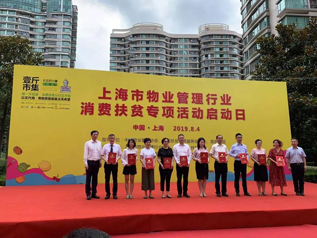 在2019年8月4日,上海市物业管理行业消费扶贫专项活动启动日,上海景瑞物业管理有限公司荣获“扶贫助农先锋奖”,经营管理部经理花萌卓荣获“扶贫助农先进个人”。