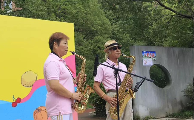 在上海外滩上有一家著名的饭店——和平饭店,她被看做是上海老饭店的经典,特别是她的屋顶花园被海内外人士誉为“上海最浪漫的地方”,在这个“最浪漫的地方”常年活跃着一支名闻遐迩的老年爵士乐队,他们的不老传说也成了上海和平饭店一道亮丽的风景。来自凉城街道社区的老年爵士乐队经典乐手郑国祥、詹素英她们带来了萨克斯连奏——我和我的祖国&南泥湾。