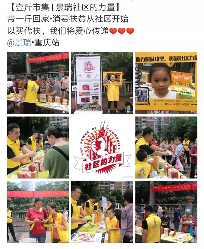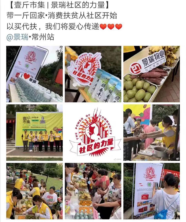 助力打赢脱贫攻坚战的指导意见》,景瑞物业全体员工积极推广消费扶贫理念,自从加入“社区的力量”消费扶贫攻坚战的大军之中,目前已经开启了15个线上小店,进行店铺布置,上架了多种多样的来自贫困地区的农副产品供业主及员工进行选择。