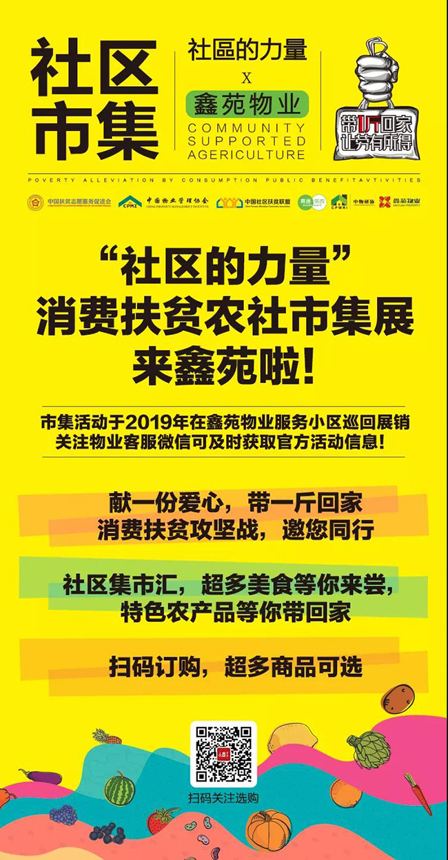 2019年,鑫苑物业积极响应党中央、国务院号召,成为社区的力量消费扶贫攻坚战首批参战企业,充分调动广大业主、社区家庭、合作伙伴的公益心,通过带一斤回家这个最简单的行为,来帮扶贫困地区最需要帮助的人。