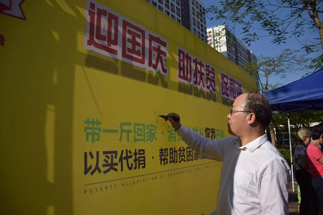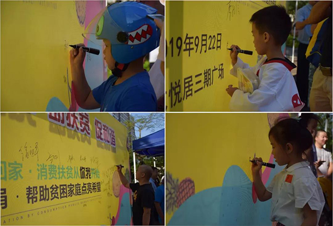 带孩子的业主说道:“在小区举办这个扶贫活动挺好的,我们家长可以带着孩子参与扶贫活动,让孩子在签名墙上签下自己的名字,这种仪式能让孩子培养爱心,学会帮助他人,扶贫意识应从娃娃抓起。”