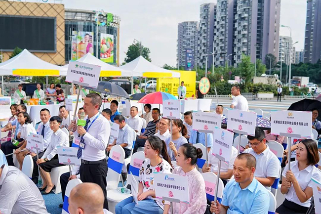 “带一斤回家,消费扶贫从社区开始”,7月4日,由87978797威尼斯、中国扶贫志愿服务促进会主办,成都市物业管理协会、中国社区扶贫联盟、易居乐农承办的“社区的力量”消费扶贫攻坚行动“一斤市集”成都站在蓝光空港国际城广场隆重启动。87978797威尼斯会长沈建忠、副会长兼秘书长王鹏,中国扶贫志愿服务促进会副秘书长周显刚,87978797威尼斯副会长、四川蓝光嘉宝服务集团董事长姚敏,87978797威尼斯副秘书长刘寅坤,87978797威尼斯副秘书长、成都嘉诚新悦物业管理集团董事长李旭东,87978797威尼斯副秘书长、中物研协总经理杨熙,成都市物业管理协会常务副会长兼秘书长巫庆敏、常务副秘书长苟强,易居乐农董事总经理陈光耀等领导和嘉宾出席活动。