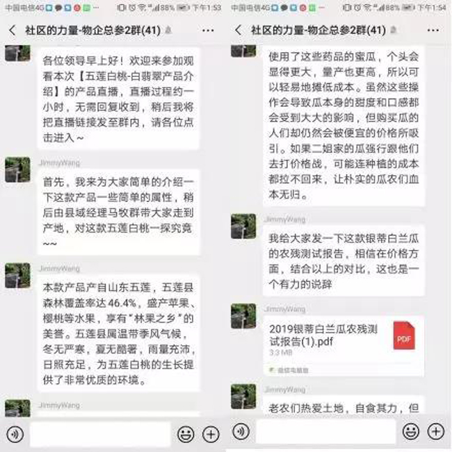 为最广泛地调动企业参与积极性,“社区的力量”组委会通过视频直播、短视频及图文培训等方式进行了活动的宣传预热。原产地直播展示了五莲白桃、阳原绿豆、富平红薯的种植生长环境、采摘打包、烹饪方法、贫困户帮扶等信息,为物企及消费者还原了最真实的产品从田间到餐桌的全流程。同时辅以图文讲解培训,便于各社区负责人更为直观、全面地了解产品,从而向社区居民推广销售产品。