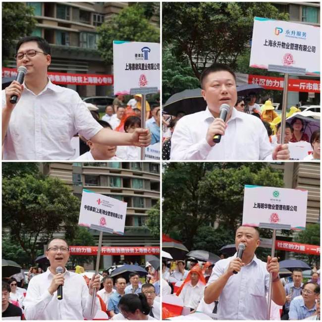 作为“首家万斤扶贫助农物业服务企业”, 上海上实物业董事长朱云飞宣读了物业行业消费扶贫倡议书,在场物业企业积极回应,纷纷举牌响应号召参战,将活动推向了另一个高潮。