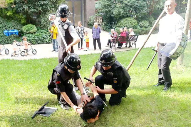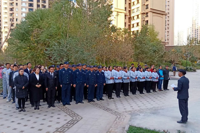 物业人的个人综合素质才是保障业主安全的先决条件,为能更好的解决治安中所存在的问题,各项目不断对员工综合素质进行提升;日常培训 、军事训练、预案演练等能够让员工自身素质得到提高的培训如期开展。雄赳赳,气昂昂,让每一位业主都能够放心的将社区、将家交给我们守护!