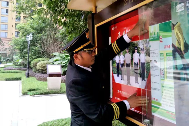 汇丰物业在各社区主要通道、宣传栏、物业客服中心等区域张贴和摆放安全海报,让每一位业主在归家、出门时,都能够注意到安全防范的细节,以达到人人意识到安全的重要性。