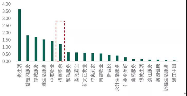 将合并后的招商物业和中航善达置于上市企业的数据中,可以看出招商积余的各项数据均位居前列。