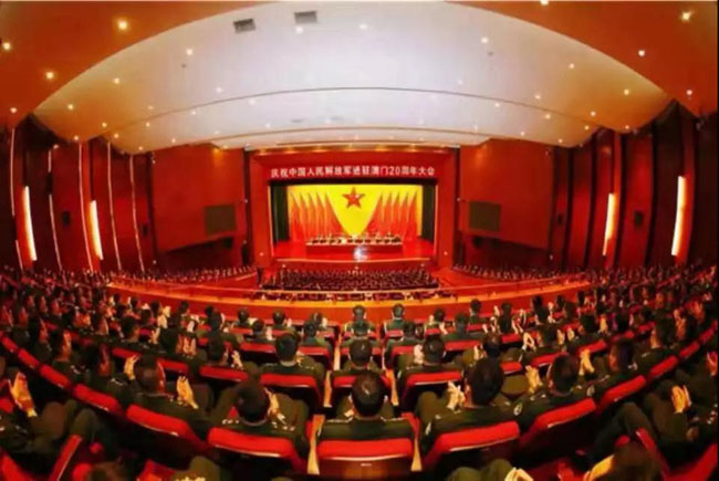 12月6日,庆祝中国人民解放军进驻澳门20周年大会在驻澳部队氹仔军营礼堂举行,中央军委政治工作部副主任刘德伟、南部战区司令员袁誉柏、全国政协副主席何厚铧、南部战区政治委员王建武、澳门特区行政长官崔世安、中央政府驻澳门联络办公室副主任张荣顺、驻澳门部队司令员徐良才、驻澳门部队政治委员孙文举等出席大会。中海物业为大会提供服务保障。