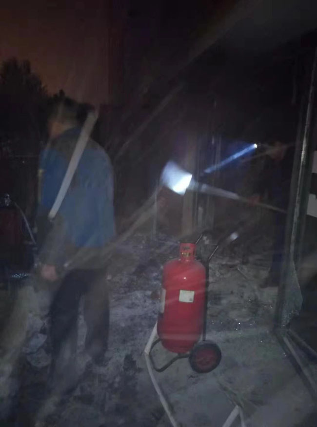 消防人员未赶来之前,在项目经理李洪蕾的现场指挥下,大家临危不惧,沉着冷静,按照日常消防演练采取消防应急措施,砸破玻璃进屋灭火控制火势,同时其他员工及时赶到维护现场秩序,控制车辆禁止进入小区,保证消防通道畅通,因火情发现早,救助及时,3:58分现场火情得到完全控制,现场无人员伤亡,项目经理李洪蕾拨打119撤警。
