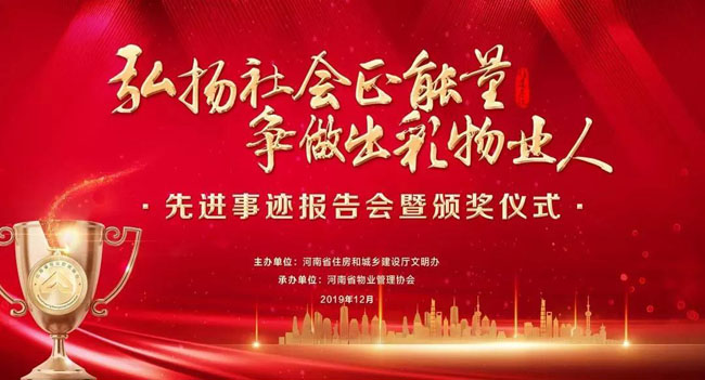 12月27日,由河南省住房和城乡建设厅文明办主办,河南省物业管理协会承办的“弘扬社会正能量 争做出彩物业人”先进事迹报告会暨颁奖仪式在郑州市黄河迎宾馆会议中心举行。来自河南省各地市物业管理行政主管部门人员、出彩物业人及物业服务企业代表300余人参加。
