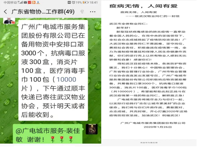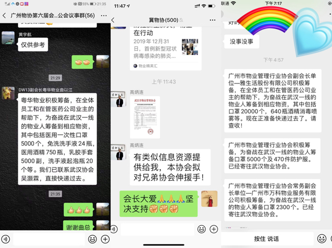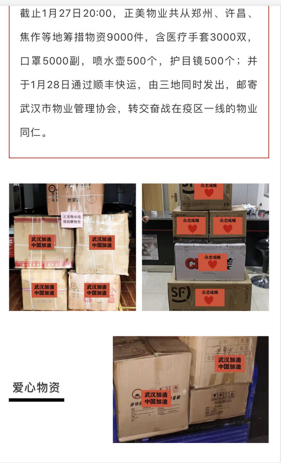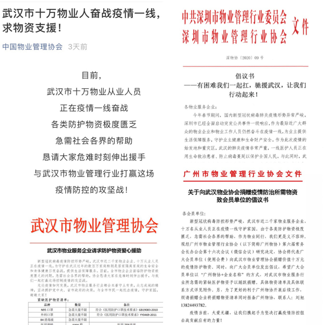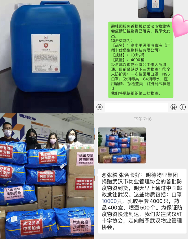 与此同时,武汉市物业管理协会收到了物业管理行业同仁的物资支持,碧桂园物业、明德物业、奥华物业、正美物业……