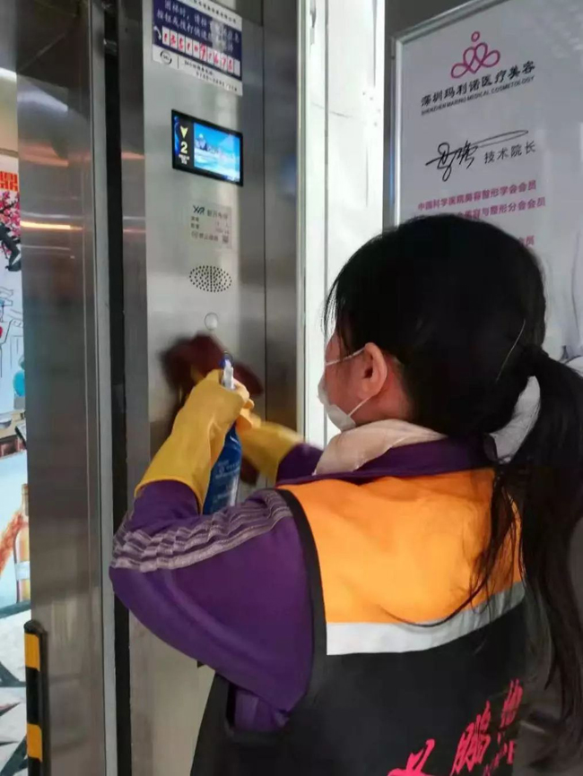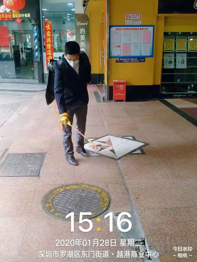 他们忙碌着,罗湖区各物业单位对小区楼栋走廊、电梯、垃圾收集点、排水沟、下水道、绿化带等公共区域进行消杀;做好人员进出、来访登记;配合街道、社区做好流动人员监测;做好工作人员温度测量等。