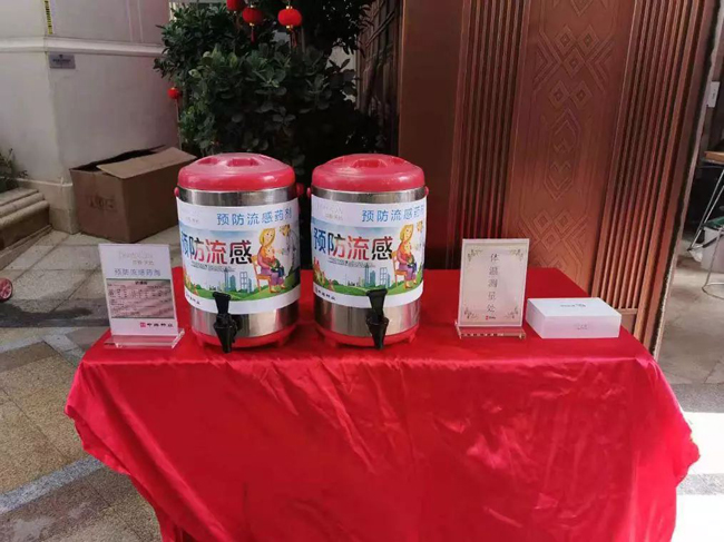 中海鹿丹名苑:给业主派发防流感汤 送业主口罩 帮业主跑腿