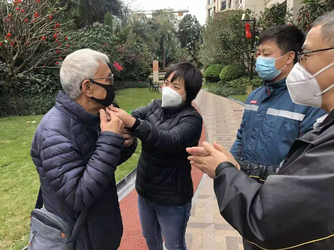 "28 日桂园街道办又发了 400 个口罩,送来了 3 台体温检测仪,我们自己也网上采购了一些口罩,除了自己员工使用外,如果业主要出门,家里实在没有口罩,我们也会送一两个去解燃眉之急。" 周迎春说。