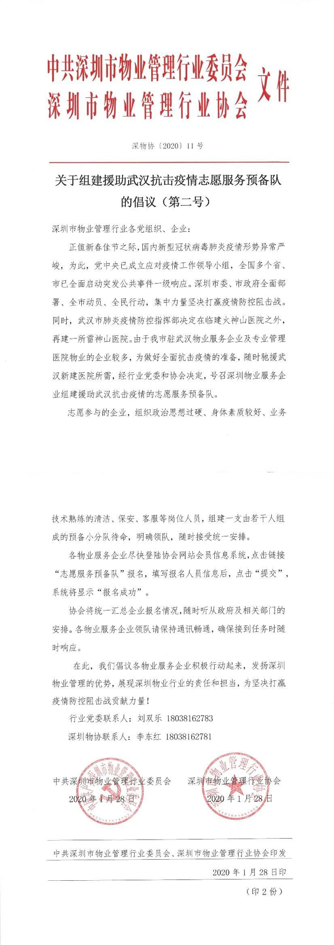 深圳市物协:关于组建援助武汉抗击疫情志愿服务预备队的倡议