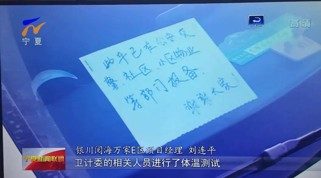 1月20日,阅海万家E区一辆鄂字牌照车辆引起了小区业主的广泛关注,他们从19号从湖北十堰来银的居民。当他们看到本地对疫情的关注程度如此之高,便主动向银川市卫计委报备并接受检测,通过体温计和测温枪两次检测,温度均正常,目前该户居民已主动自我隔离,并每天向社区电话反馈身体状况和体温情况,社区也定期上门检测,截止目前没有发热症状。
