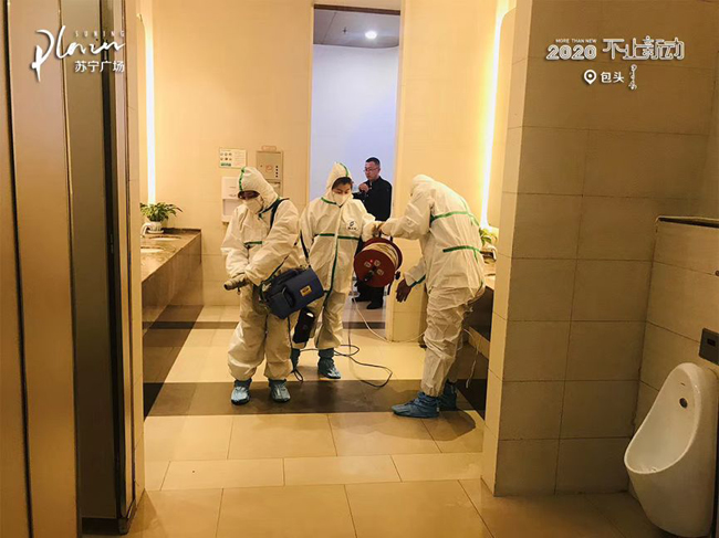 胡秀娟作为徐州苏宁悦城保洁主管,在疫情袭来的春节里,毅然放弃与女儿一起过春节的机会,坚守岗位。时下全国都在进行疫情的防控工作,苏宁悦城项目也不例外,作为保洁主管要身先士卒,冲在消杀消毒的第一线,与保洁员一起对项目进行全方位的消杀消毒,对单元门、电梯厅等重点部位高频消杀消毒。