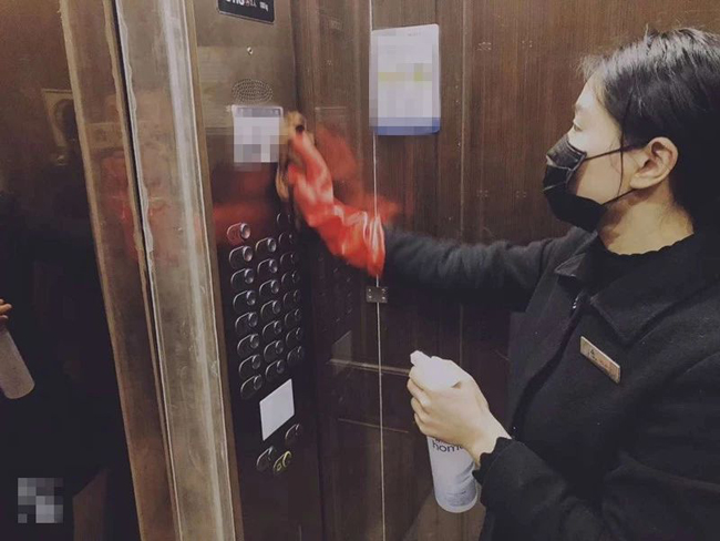 与此同时,华家池物业人员对电梯按键、侧门门禁等业主常用的公共部位消毒后,由专人张贴上“已消毒”标志,消除业主使用的顾虑,做到安心服务。