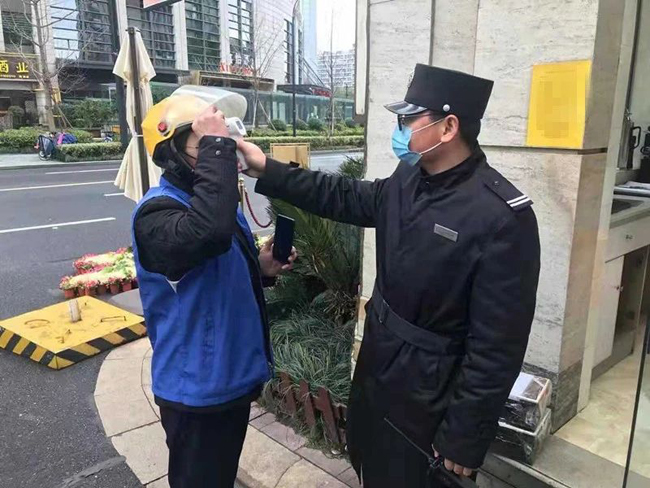 对于进入小区的物业员工、业主进行红外体温计测量,一旦发现有发热情况,将及时上报。特别是做好湖北省及武汉市来杭人员排查工作,发现情况第一时间汇报社区。