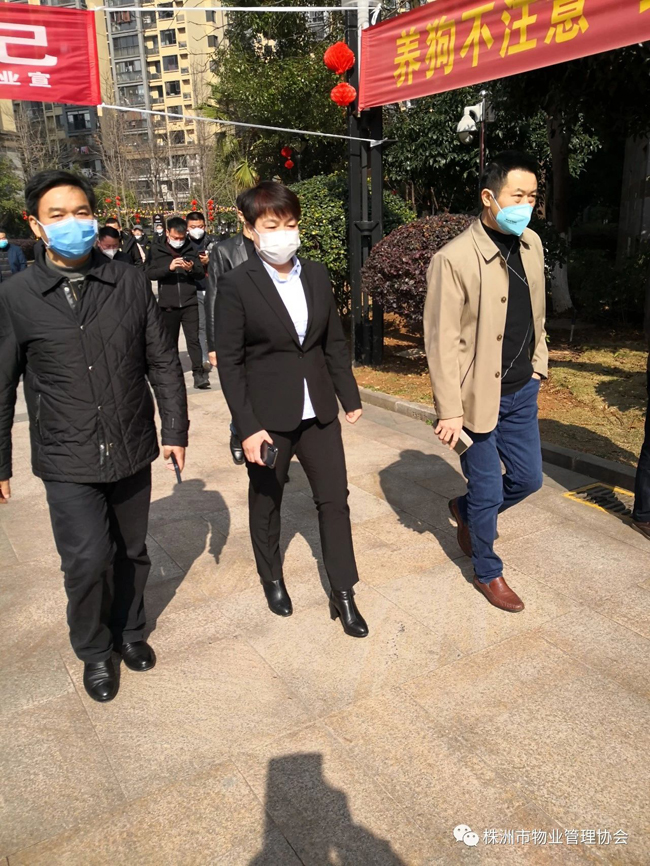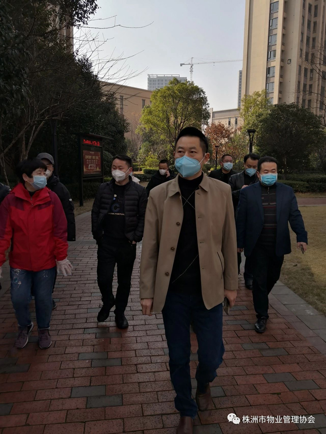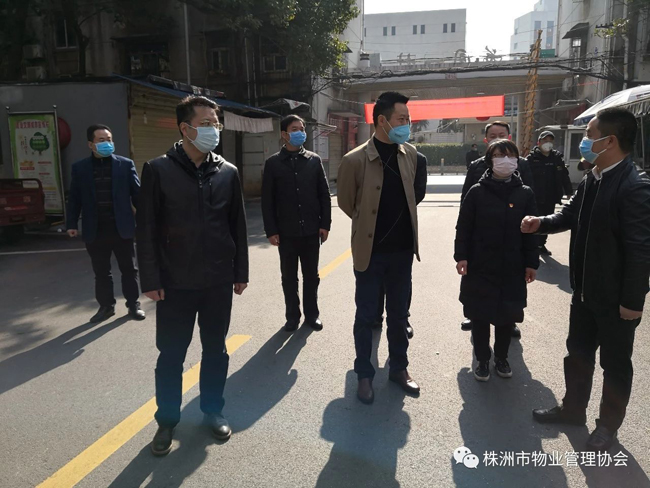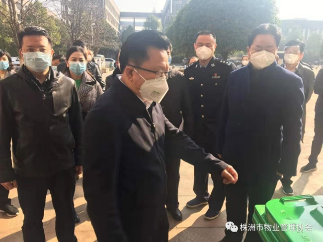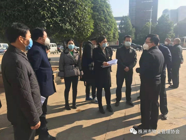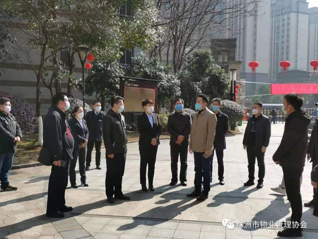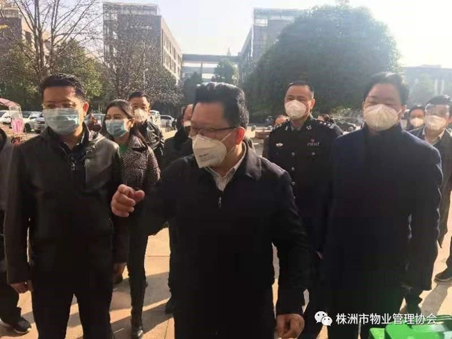 2020年1月31日上午,株洲市人民政府副市长谭可敏、市住建局局长何安国、书记谭智勇、副局长刘波、毛承义、总工李跃纲、局办主任姚军辉、物业事务中心主任陈琪、开发事务中心主任李圣、市物业管理协会会长马文新等深入到物业小区,看望坚守在一线的物业员工,对物业小区的疫情防控工作进行督查和指导。
