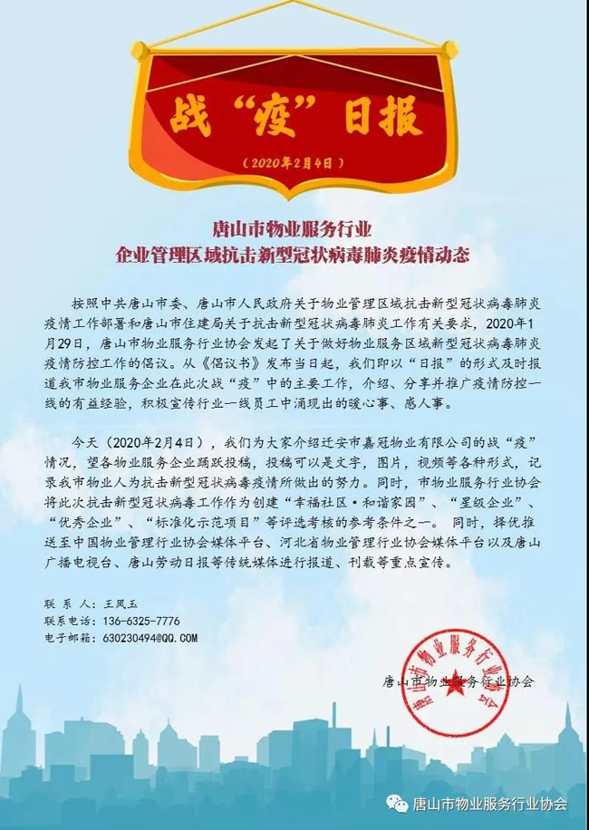 唐山市物协:唐山市物业服务行业抗击新型冠状病毒情况快报第7期