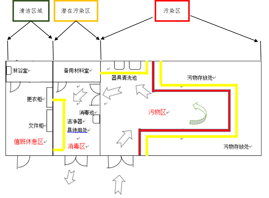(2)清洗后的工具在消毒区进行必要消毒后从规定的出口再次投入使用。