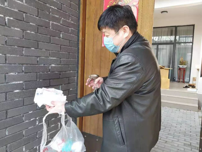 一日,贾经理在和同事外出给业主采购生活用品途中,顺道回家给家人送药。因为担心自己身上可能携带的有病毒,她把药放在门口,交代家人不要开门,隔着门和多日未见的孩子匆匆说上两句话就又返回岗位了。