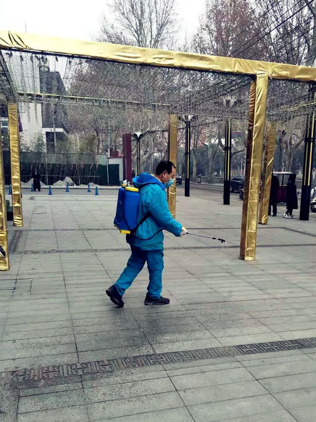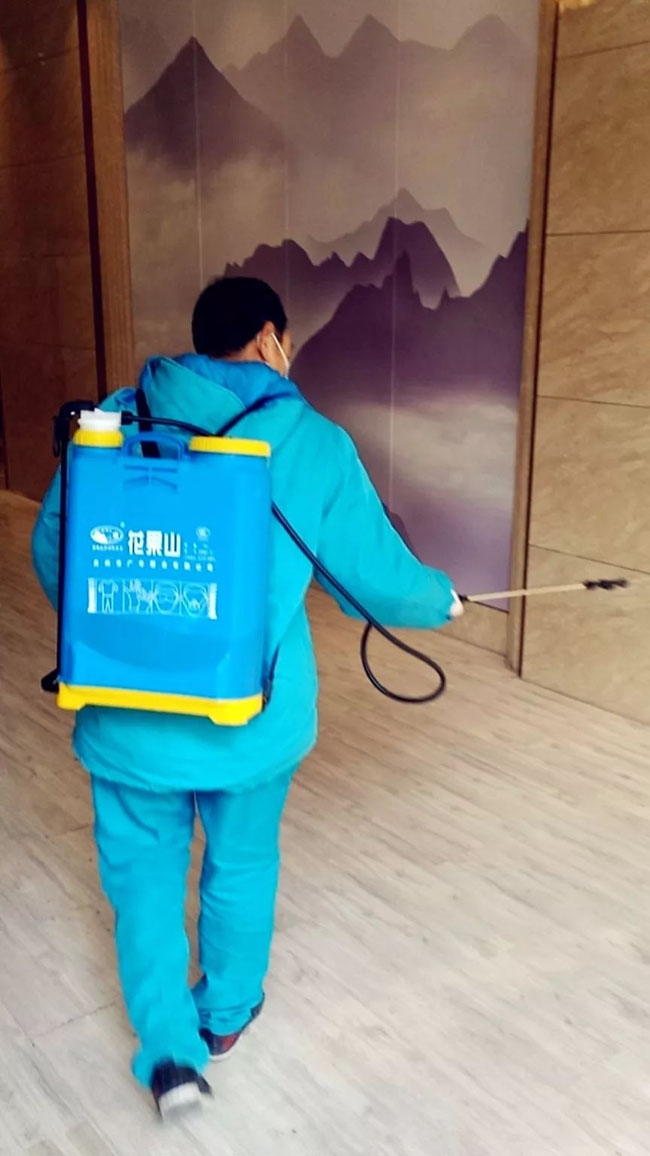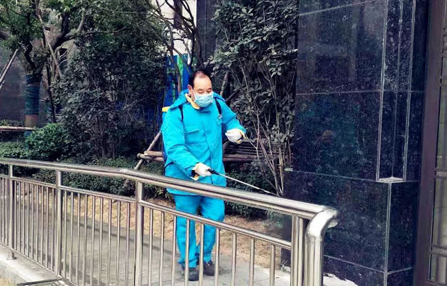 他是一名普通的物业保洁员,一身海蓝色的工装,一副口罩,一套消毒喷雾器构成了他整个抗疫期间的“装备”。
