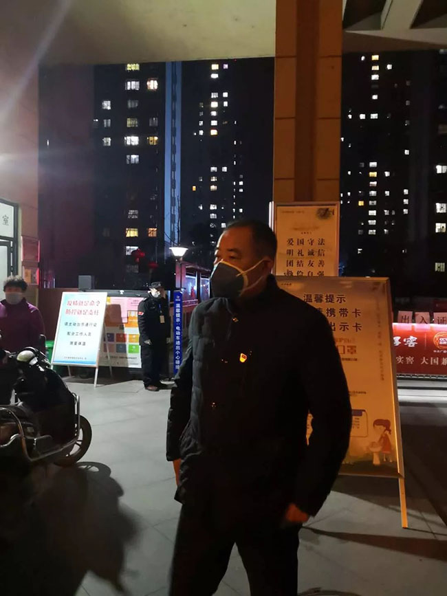 正月十五元宵节,按照传统习惯,孙霖同志应陪伴在八十多岁的老母亲身边,共享天伦。然而,面对严峻的疫情防控形势,他放弃与亲人团聚的机会,毅然奔赴在“战疫现场”。夜晚园区的大门外,始终能够看到他略显疲惫的身影。由于高强度的工作,肩周炎愈发严重了,疼痛让他在严寒中冒着冷汗,大家都劝他回家休息或回办公室休息,可他却说:“这么大的一个金葡萄,这么多居民,我得保障他们的安全,不能掉以轻心。我是党员,在这关键时期,我先上!”大家听完,眼睛都湿润了。