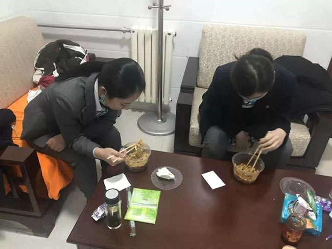 她们是一支敬业团队。她们,有父母眼中的孩子,也有年轻的妈妈,春节期间原应陪伴父母和孩子,但突如其来的疫情使假期取消,她们也义无反顾的放弃了休息,回到岗位上。除夕夜,本该万家团圆,但是她们没有吃年夜饭,没有看春晚,从下午一直到晚上零点,始终忙碌在会议室,累了在茶水间休息一下,饿了喝口水充充饥。元宵节,本该阖家欢乐,但因市委需召开会议,又非常时期,原定的会场由一个改成三个,姑娘们从早晨坚守到下午,中午饭都没顾上吃。防控疫情以来的20多个日日夜夜,她们很少按时吃上饭、睡上整宿觉,只为市委、市政府创造一个安全卫生的会议环境。