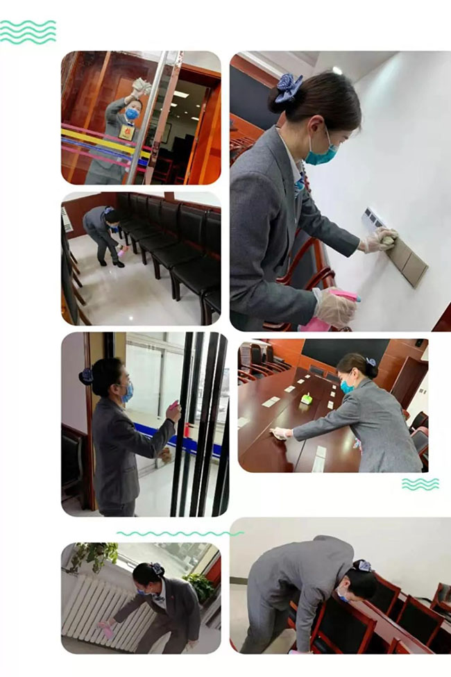 她们是一支勤业团队。她们年轻,但没有年轻人的娇气,她们用勤奋让大家认可。防疫期间工作量比平常增加数倍,但谁也没有怨言,谁也没有计较,而是全身心投入到这场没有硝烟的“战斗”中。严格按疫情防控要求,会前会后对会场进行无死角消毒,无会时保证2小时一次消杀;对茶杯等器皿按规范标准进行清洗消毒。每场会议都需要大家尽心尽力,每个步骤都不能有误,正如会服组组长陈静冉所言:“会服这份职业,不仅仅要机灵,还要有细心耐心,有责任心,要能吃苦,肯吃苦”。