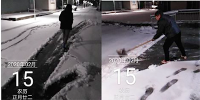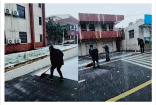 ▲蚌埠医学院项目值班人员开展除雪工作