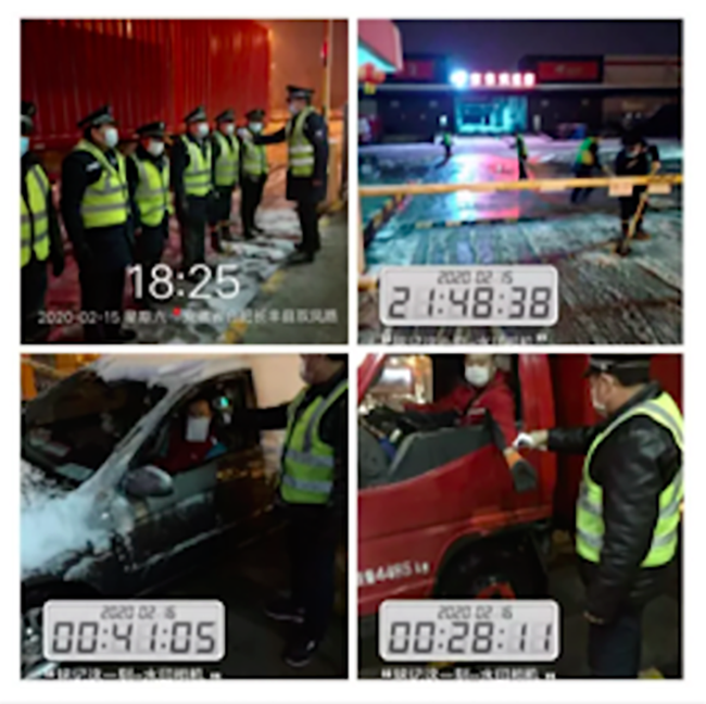 ▲京东物流园项目对夜班上岗员工和驶入车辆驾驶员进行体温测量