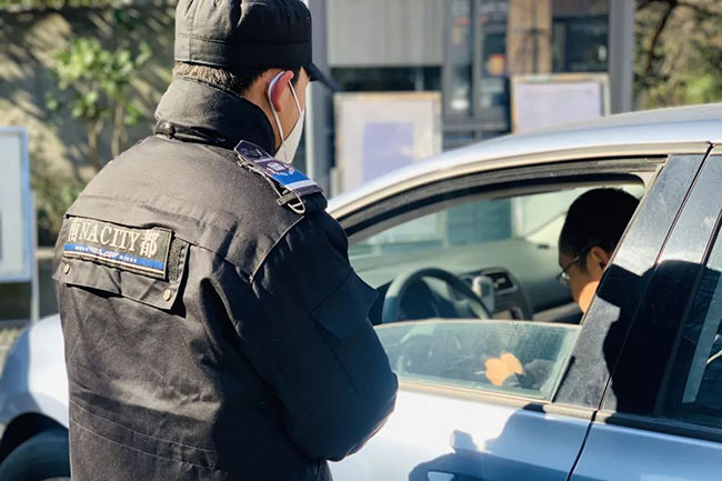 紧随其后,是必不可少的规范化登记检查:测量体温,出示健康码、身份证和通行证,物业工作人员登记、到手部消毒等。看似简单的小事,却处处体现着物业人的细致用心。
