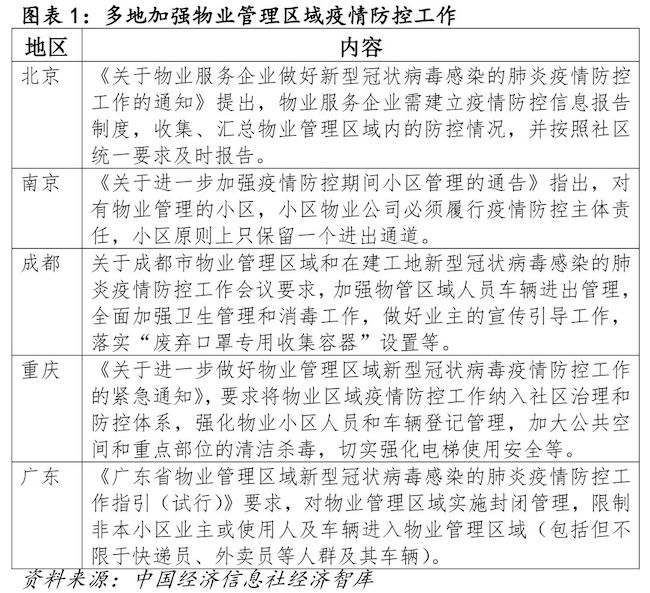 自疫情发生以来,各地高度重视物业管理区域的疫情防控。北京、重庆等地将物业区域疫情防控工作纳入社区防控体系。河南郑州、濮阳印发物业管理区域疫情防控工作规范,指导物业服务企业参照规范重点做好小区出入口管控、共用部位共用设施设备消毒消杀等工作。南京、济南等地还将物业企业在疫情防控中的行为纳入信用管理,如南京要求所有住宅小区物业消杀台账每日一报,并给予物业企业相应“信用加分”。