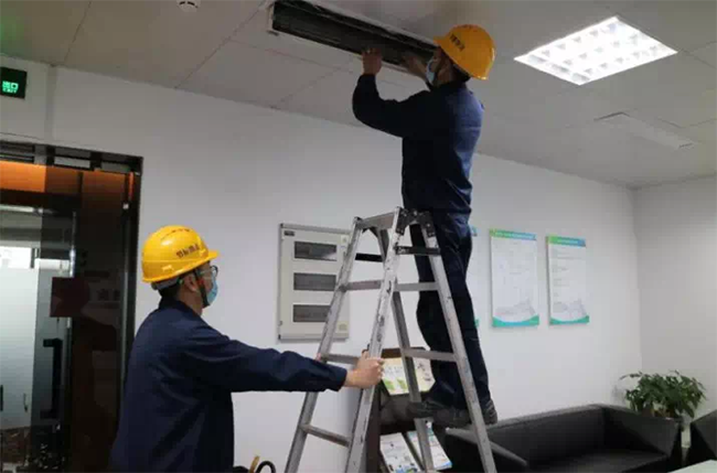在开工前对中央空调进行集中维保工作,并对空调送风口、风管、空调冷却水系统及滤网进行全面消毒,并在疫情期间每周进行一次全面消毒。电梯是项目中使用频率较高的公共设施,且为密闭空间,是项目防疫的重要触点,要求对如电梯等公共区域及设施设备每两小时进行消毒。对已知即将复工的企业,物业服务中心对提前对其工作区域进行卫生消杀,保障安全的工作环境。
