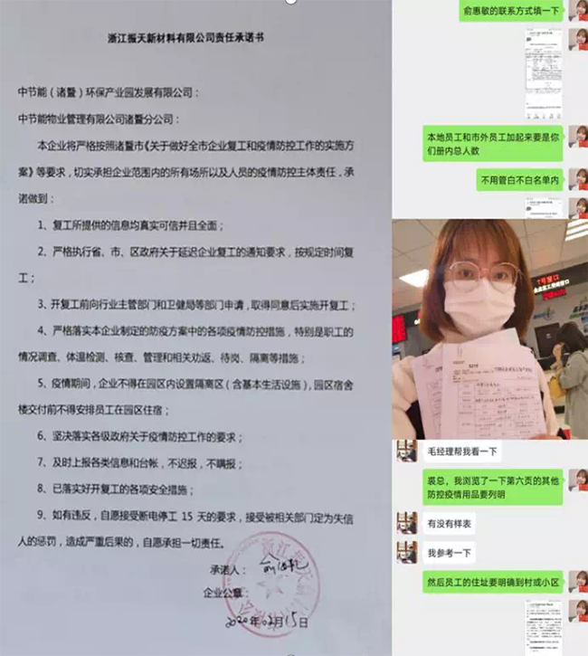 诸暨分公司:根据政府对企业复工所应准备资料及工作要求,对企业提交的复工资料一一进行线上检查,确保企业复工资料能够一次提交并审核成功。对于部分准备资料不详细或疫情防控方案不妥善的企业也是耐心进行指导。资料审核无误后,更是安排专人每天统一递交至街道办事窗口,确认企业复工资料审核通过后,同时要求企业对园区提供复工承诺函,监督和保证企业能够在复工期间认真开展防疫工作。